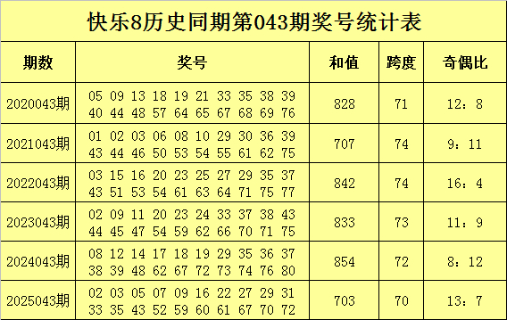 快乐8历史同期第043期奖号分析
