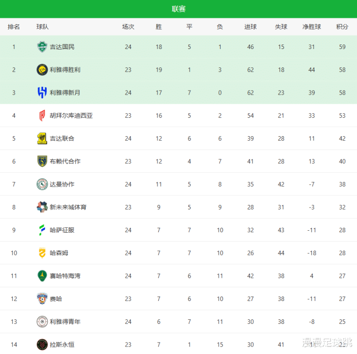 再看沙特联赛,利雅得新月客场对阵利雅得青年,双方上演了一场8球的进球盛宴。比赛一开打,双方就大打对攻战,节奏那是相当的快,卡努、库利巴利、马达什、马科斯·莱昂纳多轮番破门,再加上对手乌龙,收获5球;对面也不是善茬,3次洞穿球门,比赛过程那是相当的刺激,最终小因扎吉笑到最后,5-3拿下对手,积分也上升到了58分,仅落后榜首的吉达国民1分,与利雅得胜利同分。三强缠斗,冠军悬念被彻底点燃。