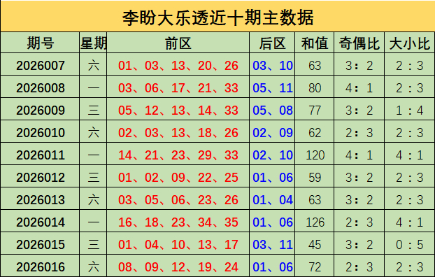 李盼本期大乐透推荐: