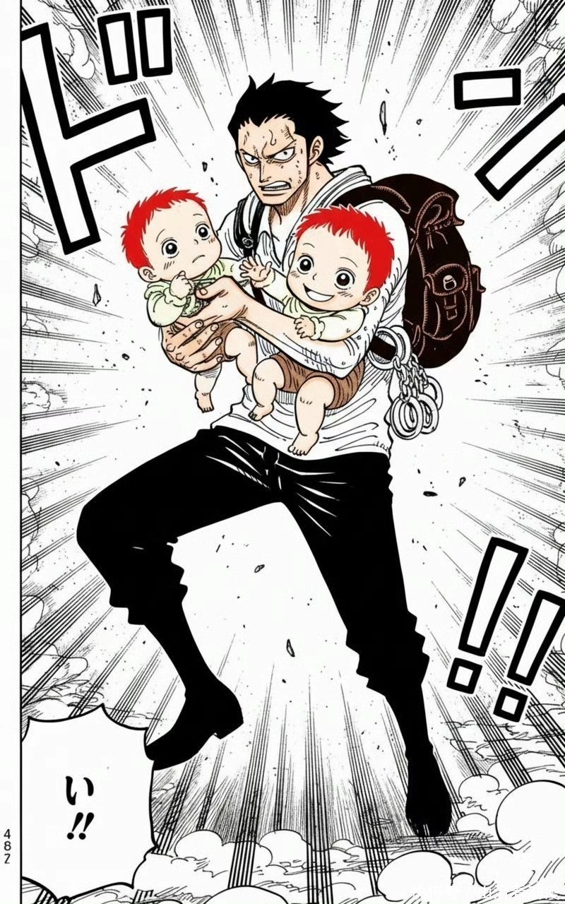 龙带着两个孩子逃跑,不过他被玛菲宫盯上,直接发射了一发激光炮重创了龙,玛菲宫就把夏姆克斯带走,因为她只看到一个孩子。龙抱起昏迷不醒的红发香克斯,他直接逃跑了,不过龙已经身负重伤,应该无法带着红发离开神之谷。